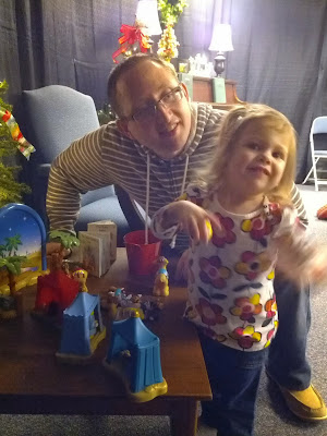Lyza wasn't quite as happy about the manger room. She felt a little overwhelmed with how friendly everyone was and how eager they were to get her dressed up in a costume. So the costume never happened.