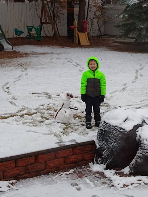 The day before we left for Canada we got a little bit of snow, just enough for Mason to make a snowman.