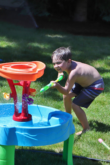 Henry was not very impressed with the water balloons (he really wanted a yellow one)