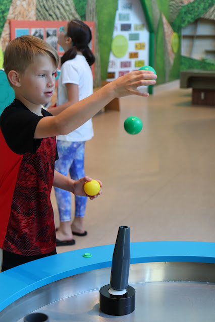 There was a kids area with lots of hands on things like this air blowing machine where the air would suspend balls in the air