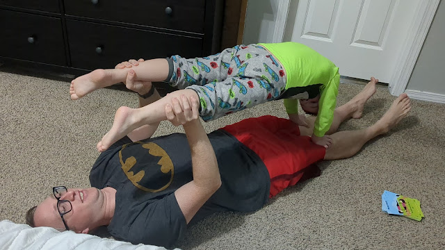 What have we been up to lately? Henry has been enjoying yoga cards where each card has a different yoga pose to try. This one is called "bunkbed"