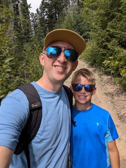 A few of us had the bright idea to drive to a nearby hike called Quinn Peak that was suggested by the lodge host. What he failed to mention was that the road going there was extremely rough and should not have been attempted with low clearance minivans ;) Well, we made it to the trail head, doused ourselves in bug spray, and started off